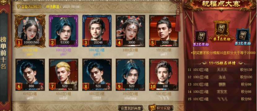 (注意:游戏中存在高额消费的选项比如商铺,鉴定,催化剂等,存在最后积分反超的情况,请大家合理做好活动策略,做好防守)