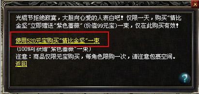 玩家在节日当天,凡购买“情比金坚”一束,将获赠“紫色蔷薇”一束!