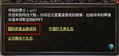 如果你幸运获得了“国际版黄金激活码”都可以在此激活。