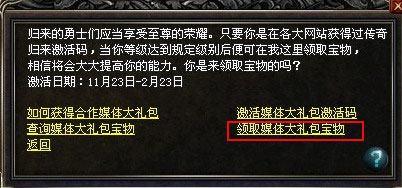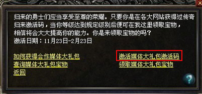 如果你幸运获得了合作媒体大礼包,也同样在盟重贵宾特使处激活。