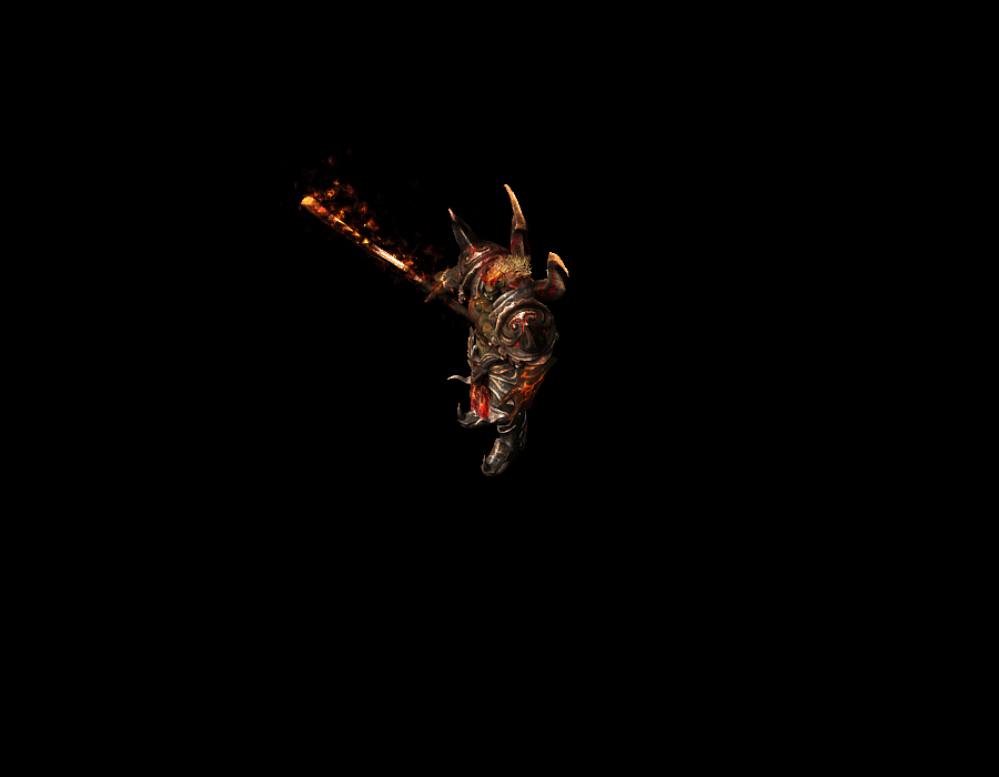 除了普通的平砍攻击之外,兽神将拥有2个比较厉害的神技,其中之一就为“火焰冲击” ,当兽神将上挑它的大砍刀时,一股焚烧灼热的火焰就如冲击波向前方奔腾,强烈的火属性伤害,使得不小心被带到的话,会受到强烈的冲击,几乎就是九死一生,相当危险了!需要及时灵活躲避!