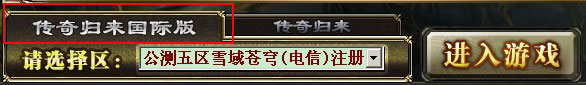 1、请玩家在客户端选择《传奇国际归来国际版》页签。区服您可以选择: