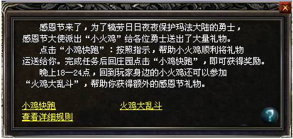 2、超过40级的玩家每天可以参加1次“小鸡快跑”任务。完成后,再次点击“小鸡快跑”即可获得奖励。