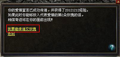 递交玫瑰后,玩家爱情宣言发表成功,并将获得相应经验值奖励。