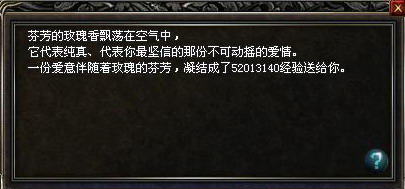 玩家递交1朵红玫瑰后,如果继续递交第二朵红玫瑰,将能够获得52013140经验奖励(仅对1-30区、公测1区—4区玩家开放此福利)
