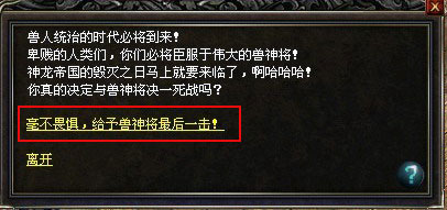 在20点之前不能击杀兽神将,兽神将将消失在异界,等待大家的下次挑战。
