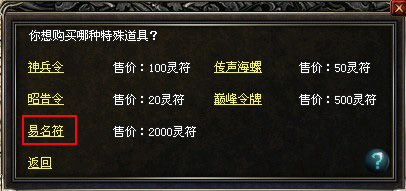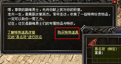 1、70级玩家可至盟重神秘商人处求取“易名符”一枚,每半年才可再次求取一枚。