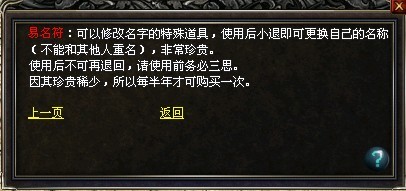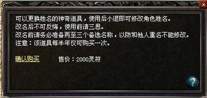 4、玩家如果对新名字不满意,想改回原来角色名,只能在半年后再求取易名符,进行改名。改名前必须谨慎!