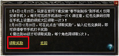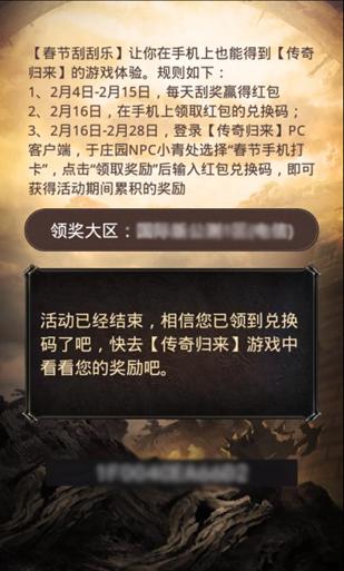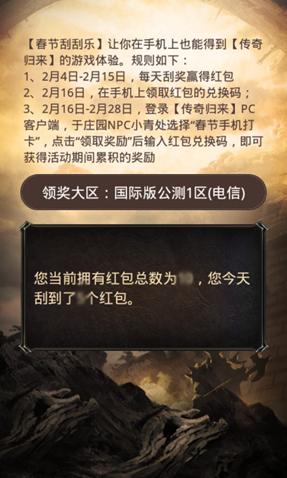 2月16日—2月28日,玩家可以在手机上获取红包兑换码(红包兑换码包含了你之前所获得的全部红包)