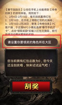 3、玩家在开始游戏前,别忘了先设置你要领奖的角色所在的大区(红包兑换码只能在手机上确定的领奖大区使用)