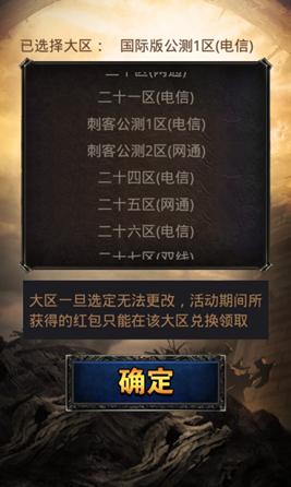 3、红包兑换码只能在手机上确定的领奖大区使用