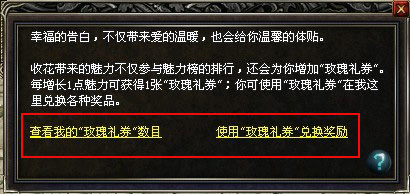 “玫瑰礼券”可在庄园月下老人处兑换奖励。