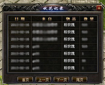 A:在个人状态信息页面(F10)的“状态”页点击“魅力”旁的“详细”按钮,可查看最近的50条收花记录。