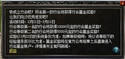奖励以3月22日的系统备份为准,如果行会等级相同,将以该等级下的经验值条百分比为准。基金奖励将在官方公布结果之后直接进入行会基金账户。