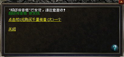 玩家凡购买 “超级传音筒”一个,就可以0元购买“千里传音(大)”一个!