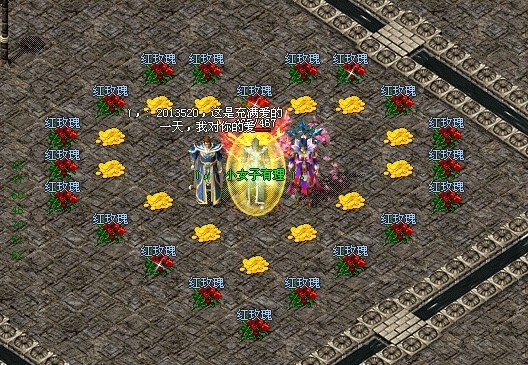 爱情是很多种的,有的是轰轰烈烈,有的是细水长流,有的是相濡以沫,有的是恩爱缠绵,只要觉得幸福就好。所有的幸福,都是相同的,爱是甜蜜,爱是相依,爱是不弃,爱是相守,爱是承诺,爱是责任,爱是传奇归来,一生有你!爱是在这个世界上唯一的2013.5.20的日子里,有你共我在这浩瀚的玛法留下永恒的一幕!