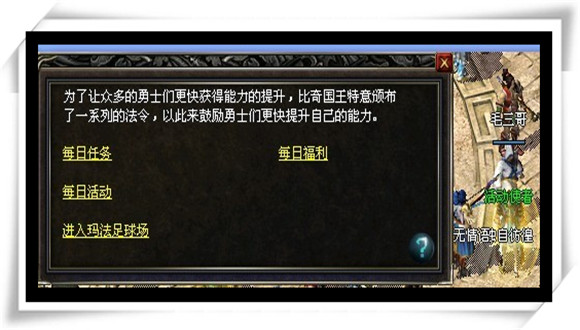 游戏里的有问必答,是系统里设置的很有用的帮助。新手有什么不懂的地方,在这里大部分都可以得到解答。还有就是参加各种各样的行会夺宝活动了。