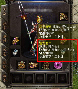 火龙的力量不言而喻,因此蕴含着火龙力量的火龙系列面巾也是珍贵异常:战士炎龙面巾、法师雷龙面巾、道士青龙面巾、刺客冥龙面巾和弓箭手狂龙面巾,也一直被人们津津乐道!