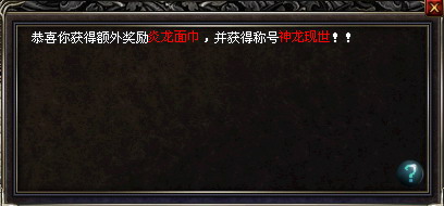 “神龙现世”称号:体力值上限+288,攻击0-1魔法0-1道术0-1刺术0-1箭术0-1,为期30天