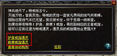 对护身戒指进行通灵,通灵后特戒将拥有更强大属性!