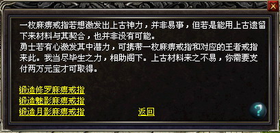 麻痹戒指通灵后可以臻化为修罗麻痹戒指(战士)、或魅影麻痹戒指(刺客)、或月影麻痹戒指(弓箭手)