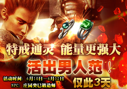 经过多日的冥思苦想,癸巳锻造师终于拥有了破解秘法:想要激发特戒的潜力,必须对其通灵,通灵需消耗一枚王者戒指祈福,再使用上古珍贵的材料对其进行净化,就能激发出特殊戒指所蕴含的浩瀚宇宙力量!但是癸巳锻造师多年来云游四方,行踪不定,目前,他只有在端午期间出现,仅此3天哦!