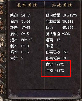 稳定性:防御撞击的属性,该属性越高越不会受到野蛮冲撞、抗拒火环等技能影响。