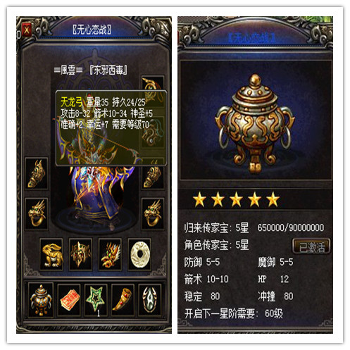 他,是第一个将万箭齐发技能练满的人,率先将传家宝冲到全区最高的人,第一个拿到天龙弓的人,第一个将魂玉冲到55级的人。太多太多的第一名,让〖无心恋战〗的名字在网通区耳熟能详。