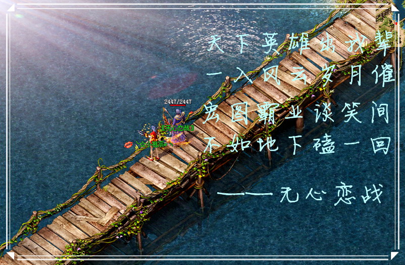 作为网通第一弓箭手,手拿狂龙弓的〖无心恋战〗觉得自己还没有达到自己理想的标准,他希望自己可以成为名符其实的天下第一弓,为自己所在的≡風雲≡行会挣得更高的荣誉!