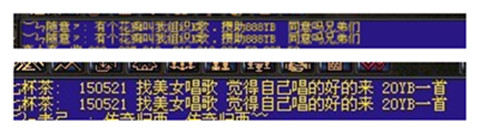还有的玩家,很喜欢听歌唱歌。自己掏腰包,在自己玩的区举办歌唱比赛,请朋友做评委,给唱得好的游戏玩家发奖励。前段时间,国际7区的东方先生就搞了几场K歌比赛,据说发出的奖金总和达到1W多元宝。