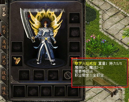 护身戒指通灵后可以臻化为摩罗护身戒指(法师)、或混元护身戒指(道士)、或月影护身戒指(弓箭手)