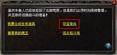 进入NPC:45级以上的勇士交纳1万金币可以从盟重指挥官处进入夺宝密室。