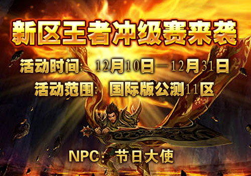 12月10日至12月31日,国际版公测11区玩家凡等级达到70级,即可至庄园节日大使处领取本职业对应王者衣服一件(每个角色限领一次)