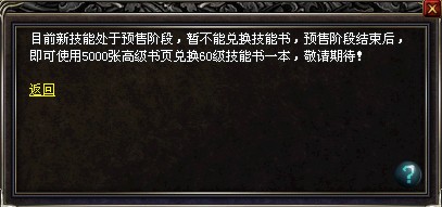等待60级新技能上线后,玩家可凭5000张高级书页可前去皇家大学士处兑换60级高级技能书一本!