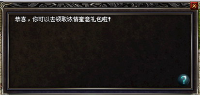 男女玩家顺利完成任务,则可得到浓情蜜意礼包一份:将随机获得灵符、祝福油凭证、灵符礼包(绑定)、迷雾火炬、书页、地下组队卷、红玫瑰等好礼!