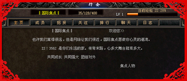 ‖国际焦点‖行会每天频频出现在国际十二区滚动的“新闻频道”中,在蓝红字的变幻中闪亮登场,开始了招贤纳士,广揽勇士之旅,为以后立足玛珐舞台,聚焦国际视野,纵横江湖,驰骋风云奠定基础。