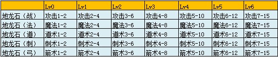 每一块石头都蕴藏着攻击的力量,每一块石头都拥有对应职业的主属性,如土龙石(刺)拥有刺术的主属性,土龙石(法)拥有法术的主属性……