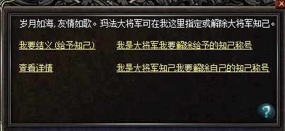 大将军可以挑选一位知己在庄园大将军护卫处(79,63),查看结义的详情: