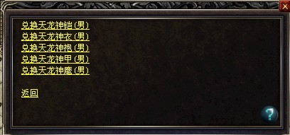 使用“醉清风”与龙之精华兑换,可任选一件天龙神装(男永久)