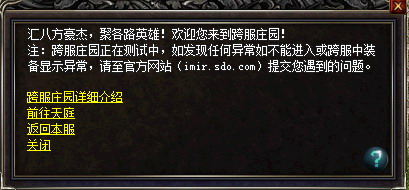 1、跨服庄园不开放元宝交易,不开放商城,不开放任何活动NPC,暂不开放行会信息