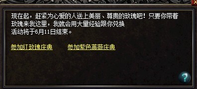 玫瑰传情,活动使者正需要大量红玫瑰、紫色蔷薇来布置,勇士们,赶快帮助活动使者收集红玫瑰、紫色蔷薇吧,他将给予你惊喜的回馈!