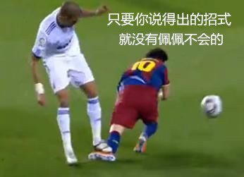 这么多年下来,肘击、飞踹、蹬踏、脚踩、撩阴、拳击、推搡、头顶,只要你能叫得出名字的,就没有佩佩不会的! 如上种种,都说明佩佩实在是一个“武林高手”,足球固然是自己的职业,武术才是一生的追求,对于敌人要无情打击,也要带领队友一起“进步”,身为一个前辈,这么做实在是本分,本分而已。