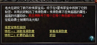 传家宝达到6星之后,就可以领取一枚本职业的6星传承勋章。
