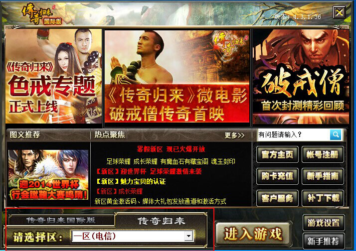 原客户端界面分为“传奇归来国际版”和“传奇归来”2部分进行登陆。
