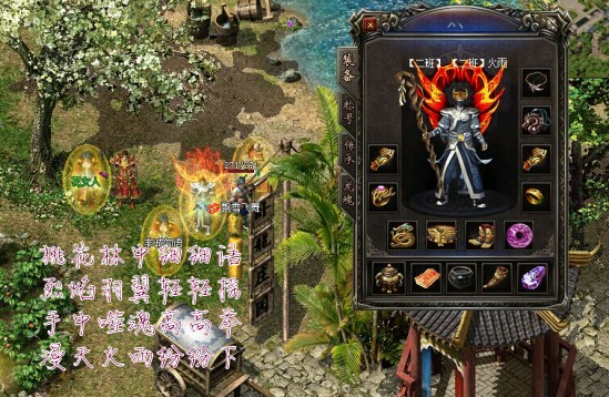 桃花林中细细语 烈焰羽翼轻轻摇 手中噬魂高高举 漫天火雨纷纷下