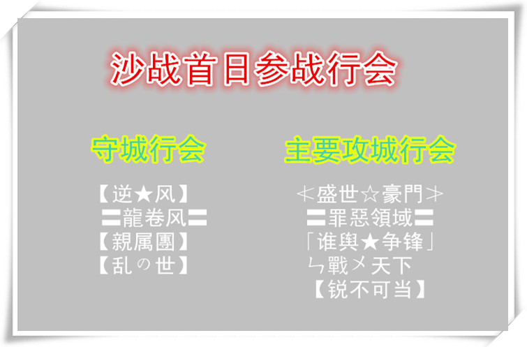 “皇帝轮流做,今天到我啦”。【逆★风】在稳操胜券后,将沙城让给联盟行会,使得和自己联盟共同守城的行会都获得了积分,也能获得相应的奖励。