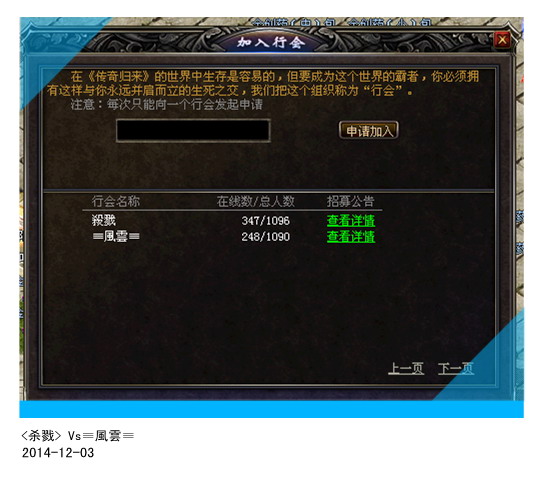 PS:冠军之夜定于本周五,在此特代表争夺冠军之位的两大行会,诚邀各界朋友前来观战。共同见证2014年度首次跨服战中最具有历史性的一刻!