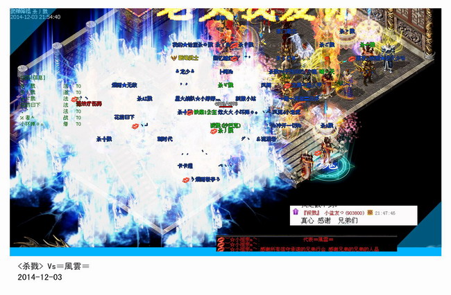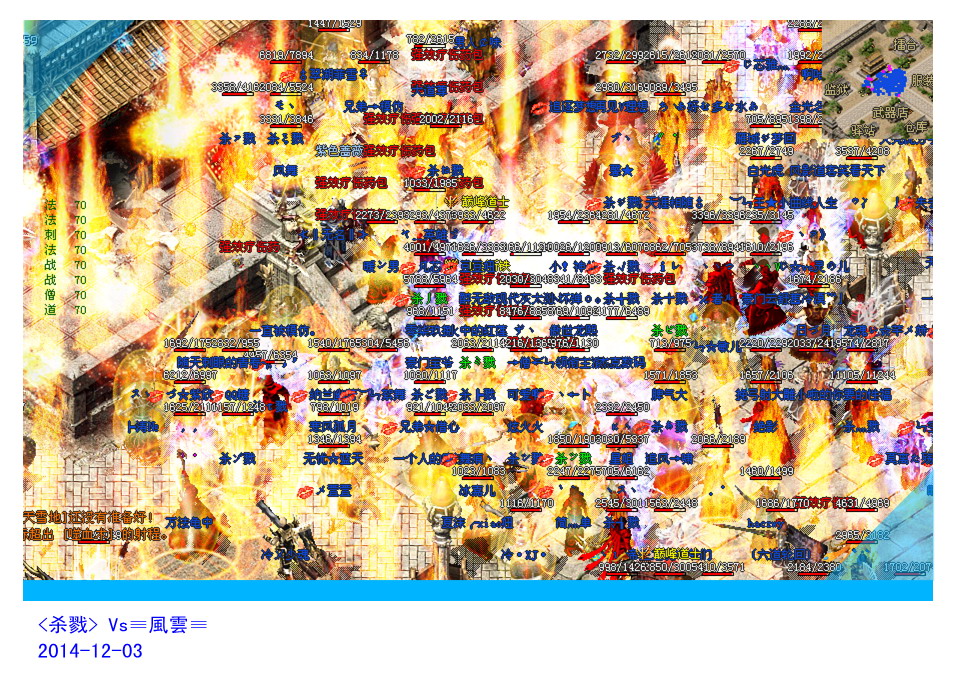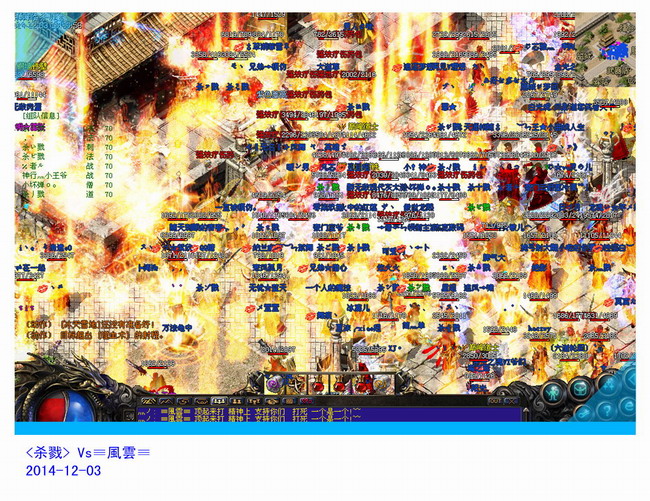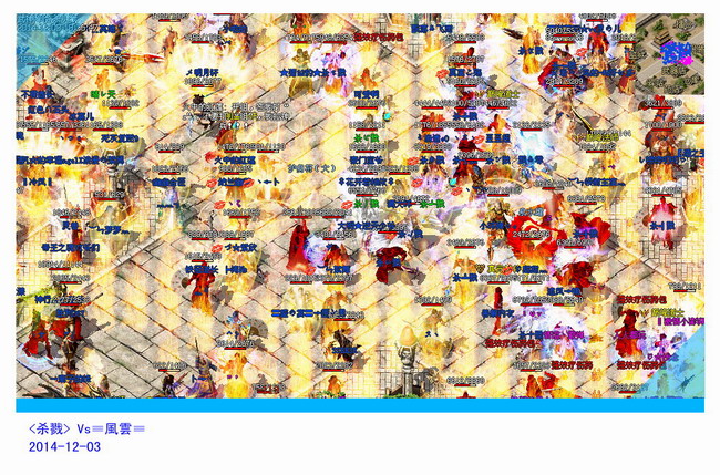 备受瞩目的2014年度首次跨服战迎来了最为激烈的一场战役,让全区全服玩家热血沸腾的,号称传奇归来目前最激情最火热的一个区服12-27互通区的两大行会的巅峰对决,一个是来自于老25区的≡風雲≡行会,一个是来自于27区的殺戮行会。两个行会现在同为一个互通区内,而且实力相当,所以这次的跨服战又被界内人士称之为史上最激情的一次战役!