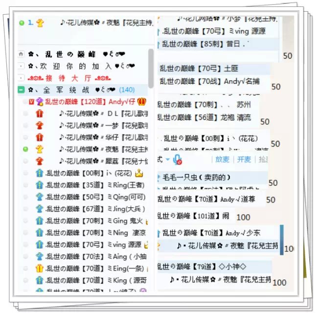 晚9点10分,花儿传媒的美女主持上唛,管理依依表达了对大家5年来不离不弃的深厚情谊的感谢并送上真挚的节日祝福。紧接着一首《好兄弟》奏响节日的乐章,乱世の巅峰行会YY366666人气一路飙升,全行会热情高涨,全民参与到活动中来。精彩节目层出不穷,一波接一波高潮跌起,在这个寒冬腊月,让大家感觉温暖如春。参与者纷纷使出看家本领,个别游戏让众人哭笑不得,蓦然发现,平时骁勇善战的有些兄弟平日里低调不作声,一上唛竟是如此多才多艺。如:东北小伙闹闹磁性十足的歌声掳获了行会不少女玩家的芳心。人称东少的天下一绝,模仿秀果然是一绝,估计行会其他玩家无人能比。更多兄弟除了表演外,更在唛上,在屏幕上表达了对行会对兄弟的深厚情谊。