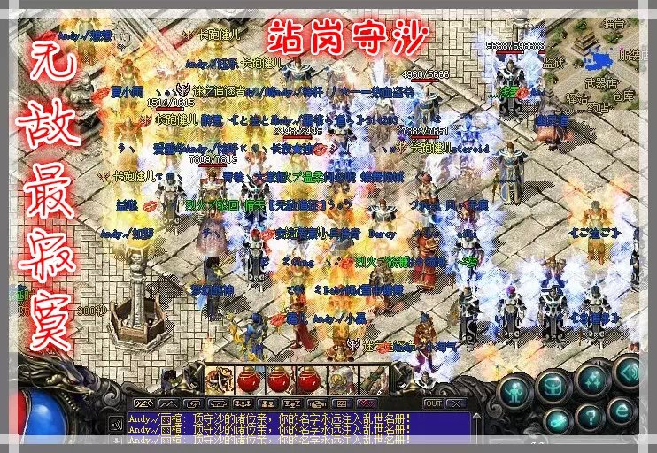 战歌已停,战鼓声退,鹤立沙城,无敌最寂寞。除了站岗守沙,就是自由活动打宝打猎聊天K歌,传奇路上依然多资多彩,只是盟重土城没有了往日的热闹喧哗。真心期待从国九【二班】撤离出来的一批实力暗藏的资深老玩家能挑起大梁,重振旗鼓,如排名全区第一人称狼总的狼神,能打能说能上唛指挥的和哥等等,他们成立的≡纵横★天下≡人数不多,但个个都是精兵强将,装备等级一流,老牌行会〓光辉★岁月〓与【不离不弃】也是骨灰级草根玩家,目前没有大激情,很多人在线时间并不长,正值韬光养晦之时,各方势力都不容小觑。哪天众人合会,亦或是二班老板团回归,激情卷土重来,再次掀起一场血雨腥风也说不定哦。
